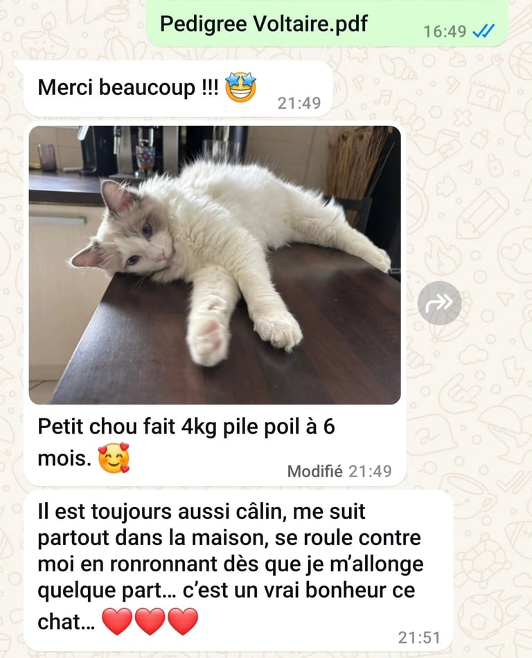 Tous les chatons sont déclarés et reçoivent leur pedigree LOOF
